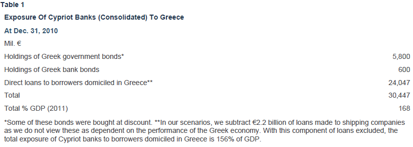 Why did cyprus need a bailout? For one main reason, its banks. They got too large too fast. Despite having ….And so with the linkage between the greek and cypriot economies, as the greek situation went from bad to catastrophe the cypriot banks were holed badly, having extended credit equivalent to over 150% of cypriot GDP to greece. These private sector loans are of course now damaged and the cypriot banks were further weakened by the writedown of greek official sector debt. Cyprus is criticised for having an overly large banking sector and at 7 times its GDP it is to large. Part of the reason it is too large is that cyprus, like another small island we can think of , operates as an offshore financial center. And here we see a rancid whiff of racism and xenophobia.